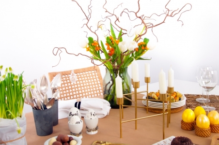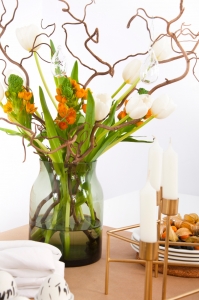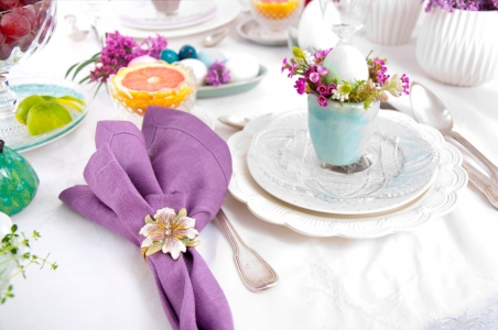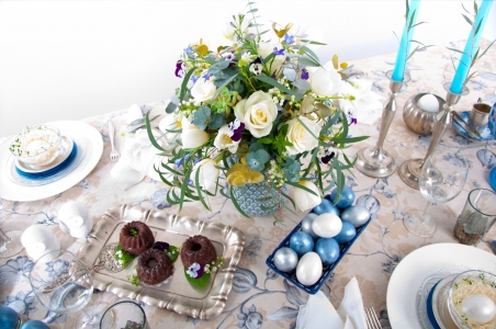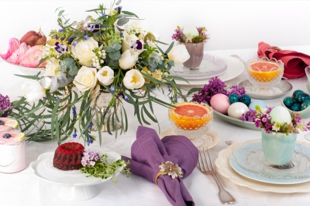 Exista putine momente atat de incarcate de emotie si semnificatie ca masa de Pasti. Eu simt ca florile isi au locul lor in acest moment, cu atat mai mult cu cat Pastele este o sarbatoare de primavara, cand natura erupe si ne daruieste minune dupa minune – liliac, lalele si cate si mai cate ramurele si ierburi fragede.